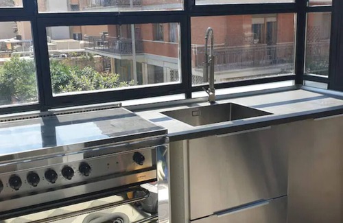 Design apartment recently completely and finely restored with quality materials and the most innovative technologies. Home automation, solar heating and photovoltaic electricity production, private parking, accessibility for special needs are some of the characteristics of the house. Furnishing designed by an internationally renowned architect, terraces and large green spaces complete the picture. Your oasis of green, history, design and technology in the heart of Rome.
