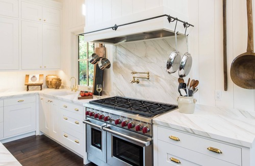 The kitchen of your dreams! Big is the operative word here – plenty of space to prepare and serve your favorite meals. Your inner chef will love the professional Wolf stove with 8 (big again) burners and two ovens. And with a center island measuring 7’ x 7’, there’s plenty of room for everyone share in the cooking and the eating. For serious entertaining – there’s a separate Chef’s Pantry ideal for larger crowds. And the dining table seats twelve comfortably.