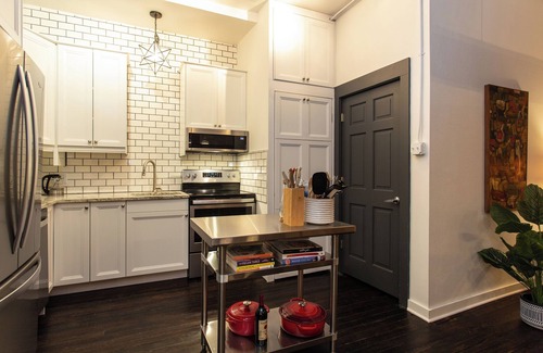 A former dentist's office in the late 1800's, this unit has been transformed and updated with modern luxuries and a designer touch. No detail overlooked! FOR YOUR CONSIDERATION: This unit is located above a really popular restaurant, and while we have made every effort to minimize noise, potential guests should know there is noise (music, voices, conversation) on busy weekends. We have added white noise devices in the sleeping areas. That being said, there is no way for us to fully mitigate the noise from the restaurant.