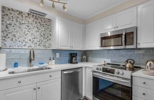 5 star rated, classy 2-bedroom condo on Scenic Highway 98 in Destin with private beach access. This family-friendly area features a bike path, nearby dining, and Destin beach just across the road. Enjoy updated amenities, a fully stocked kitchen, tennis courts, pickleball, a private heated pool (seasonal), and a secure boom gate entrance for private parking. The master bedroom has a king bed and en-suite bath, while the second bedroom offers a twin and full bed with a bathroom across the hall.