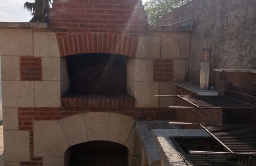Outside, an unheated indoor pool and a space with bread oven and barbecue.