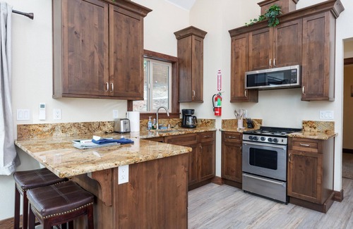 The open concept kitchen is well equipped and perfect for cooking family meals while on vacation! The living room has a propane fireplace, a 55" LED TV, and dish network satellite television, perfect for snuggling together on cold mountain nights. Upstairs is a large sleeping loft with a twin over full bunk bed. Enjoy a BBQ on the Weber propane grill while enjoying the beautiful mountain views. This home has satellite internet good for emails and browsing only, sorry is no Netflix, Zoom, or streaming. This home has air conditioning. In-house laundry can be opened up for guest use upon request. Downstairs is a bedroom with a queen-size bed. There is a full-size bathroom on this level.