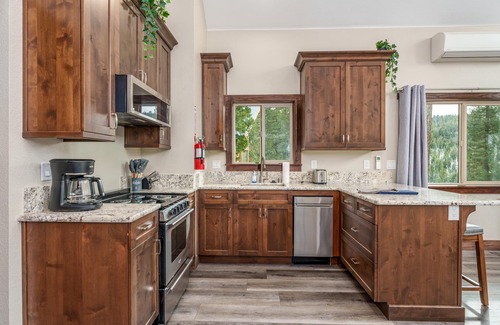 Newly built in 2021, Devonshire-Aragon is a spacious duplex with one private bedroom with a queen bed and a large sleeping loft with a twin over full bunk bed. This home features beautiful mountain views being nestled in Yosemite West, a private community in Yosemite National Park. Comfortably sleeps 5 guests, this home can be rented alone or with its mirrored other side, Devonshire-Aberdeen.