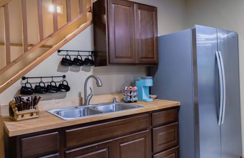 Retreat to the main level master bedroom, furnished with a king bed and a charming bathtub for indulgent soaks. An additional queen bedroom on the main level offers privacy with its separate bathroom. Upstairs, discover a second master bedroom with a king bed, providing comfort and tranquility. The children's bedroom boasts four twin beds and trundles, ideal for the little ones. We also have a pack and play available for the tiny ones!