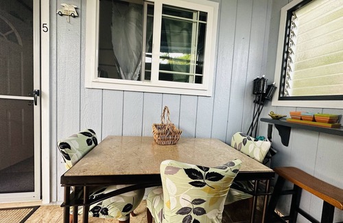 Located in a safe, calm, and inviting neighborhood, you can drink Hilo's renowned county water—touted as some of the best in the nation—straight from the tap with total peace of mind. After a day of exploration, unwind on the plush SlumberWorld queen mattress or sink into the comfy leather futon that opens into a bed, where you can enjoy captivating views of your private lanai. It’s the ideal spot to savor a cup of rich Kona coffee or bask in the soothing Hawaiian evening breeze.