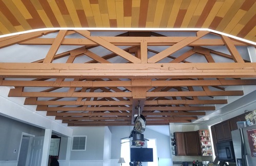 House has master suite including king bed, walk in closet, private deck and separate bath. Custom lighting dimmers in the living areas, allowing you to set the lighting to perfection.