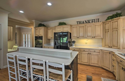 Trade in the ordinary for the extraordinary at this custom-built 3-story Hot Springs vacation rental, better known as 'Flintwood Court Estate.' The upscale 5-bedroom, 3.5-bathroom home offers an extensive library, a fully equipped eat-in kitchen, 2 decks overlooking the water, a cozy fire pit, stylish bedding and decor, a game room, and much more! Experience the beauty of Lake Catherine State Park where you and the kids can enjoy horseback riding and nature hikes - just 2 miles away! Book today.