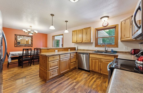 Welcome to Bear Cove Escape — a dog-friendly 5BR retreat for up to 15 guests, tucked away on a 6-acre wooded property just 10 minutes from Wisconsin Dells, 6 minutes from the Wisconsin River boat launch, 20 minutes to Castle Rock Lake, and 25 minutes to Cascade Mountain. Managed by My Favorite Home Away From Home Property Management.