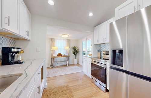 With multiple sleeping arrangements, this home accommodates families and friends with ease. The main bedroom boasts a plush queen bed, while the second bedroom features twin bunk beds—perfect for kids or extra guests. A hidden bonus? The cozy twin bed tucked into the laundry room, which also includes a convenient combo washer & dryer. Need a little extra privacy? The third bedroom, accessible via an exterior walkway, comes with its own entrance, making it ideal for couples, teenagers, or guests who enjoy a secluded retreat.