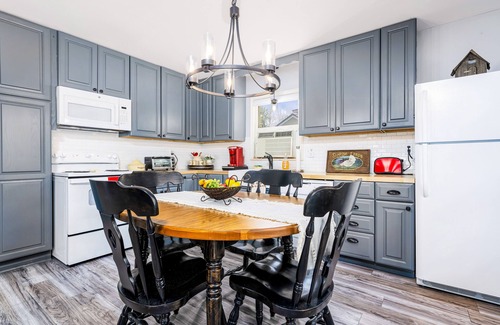 If you're looking for a classic, comfy, and family-friendly getaway, check out this charming home. This retreat features an open floor plan made up of a well-equipped full kitchen, a dining table with seating for four, and an inviting living area with plush furniture, cable-equipped TV, and a warming fireplace for those chilly winter nights. Off of the main living area, you'll find the two bedrooms. The queen bedroom has its own TV for you to wind down in your own space. The private washer/dryer will take care of the clothes from the day so you can relax and recharge. If you don't feel like heading inside come evening, fire up the gas grill for a cookout in the fresh air or sip a glass of wine on the front porch as the sun goes down. Guests will also enjoy access to the local golf course and shared pool.
