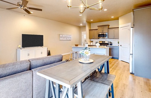 Find a true escape in the luxe comfort of this brand-new home (September 2023)! This splendid retreat enjoys an unbeatable location in a quiet neighborhood with a small kids' play area right across the street from the house. You will be just a mile from the freeway, two and a half miles from Ford Idaho Center, and fairly close to Boise Airport, downtown Boise, and Bogus Basin Ski Resort. A short half-mile walk leads you to Grimes walking path and Nature Preserve for a relaxing walk or bike ride alongside a peaceful stream.