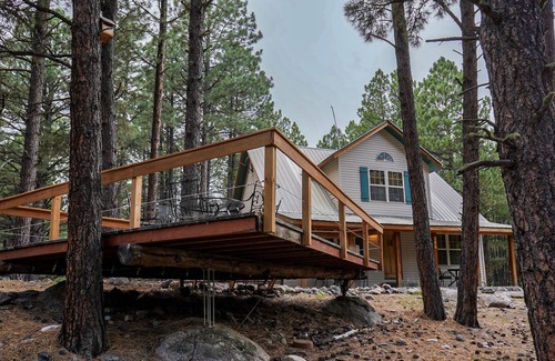 At the end of the day, relax in the spacious living room with a movie, board games, or simply enjoy the company of family and friends. You'll be just steps from the fully equipped kitchen with all the amenities you’d need including an eat-in kitchen with seating for up to eight. After dinner, head out to one of the two furnished decks and enjoy your natural surroundings. Nestled under towering ponderosa pines, these decks - complete with a gas grill and eight-person table - are the perfect place to gather with your loved ones. The home also comes with a washer and dryer and complimentary laundry essentials for your convenience.