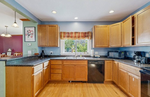 After a long day of whale watching or shopping for enviable souvenirs, kick your feet up at home with some Roku streaming on the TV. Catch some rays on the furnished deck when it's warm or watch the leaves fall from the fully-enclosed front porch; this home is truly an all-season getaway. If you want to try your hand at preparing some of the local cuisine, make use of the well-equipped full kitchen. And, don't worry about lugging heavy suitcases with you; there's a full-size washer and dryer so you can travel carry-on only.