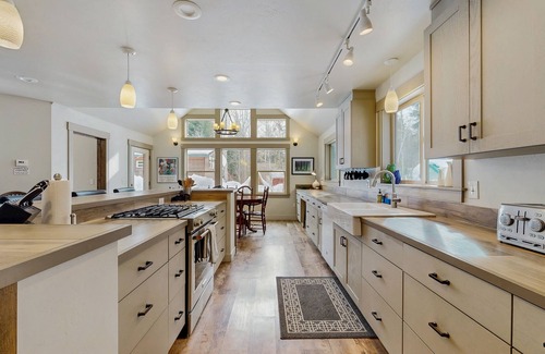 Multiple families or large groups of friends are sure to love this stunning McCall home by Payette Lake! Full of all of the comforts of home and more, this getaway boasts a deck perfect for grilling, a spacious living area with a warm fireplace and plush sofas, and a fully equipped gourmet kitchen for whipping up tasty meals with ease. For a bit of extra relaxation, the private hot tub can be just the place to soak in bliss under the stars. When it comes time to hit the hay, four bedrooms including two main suites await with king beds. Plus, a private office space with desks, free WiFi, and cable TV are all ready to assist in remote work or entertainment.