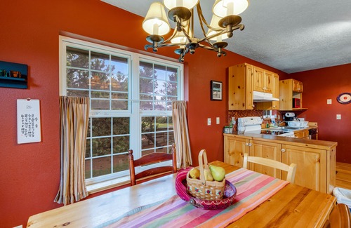 There is a good selections of games for adults and kids and a large fenced yard with apple trees. The stairs across the street lead to the beach (please note that they are steep). High tide puts on a spectacular show of crashing waters at Devils Punchbowl, but the shore line is best visited at low tide for the sake of safety. Whale watching is popular in this area, as well. If you drive a few miles south to Newport, tours are available at Yaquina Head Lighthouse.