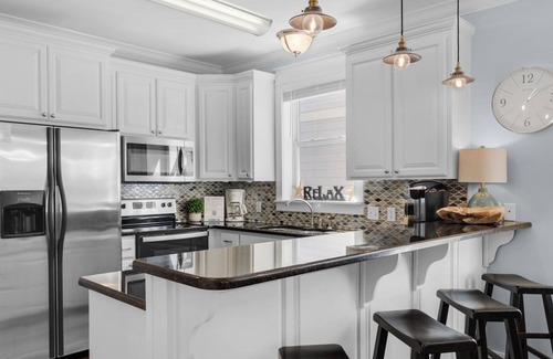 The bright and coastal open concept living/dining/kitchen combo is an amazing welcome to your vacation. There is plenty of room to enjoy family and friends on each of the 3 levels of this beach home. There is a convenient queen bedroom on the 1st floor and 3 more bedrooms upstairs. The 3rd floor includes a wet bar area and beautiful observation deck for some fresh air, Florida sunshine, and those famous 30A sunsets. Each bedroom features easy access to an outdoor space. The kids will love the bunk room with private bathroom and extra entertaining space with large TV.