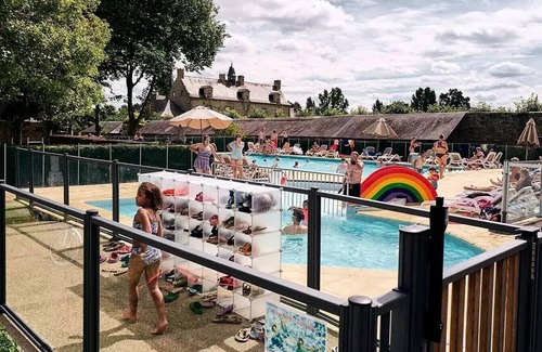 Domaine du logis is a picturesque five-star campsite in France, located on the grounds of a 15th-century castle. At this campsite, you can daydream on the terrace overlooking the magnificent castle. In one of the outbuildings, there is a cosy bar that regularly hosts concerts. If you want to cool off, you can enjoy the swimming pool surrounded by a beautiful terrace with relaxing seats. Domaine du logis is a quiet campsite located in green meadows. It is very well maintained and the sanitary facilities are of good quality and very clean.