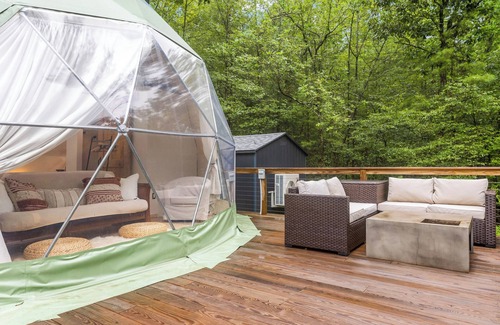 Experience the best of both worlds at our one-of-a-kind DomeHaus, where modern comfort meets natural tranquility. Our newly renovated geodesic dome and yurt offer cozy wood stove fireplaces, stylish furnishings, and charming views of the private pond and surrounding woodland. Come experience our remote and peaceful escape from city life while keeping connected to some of the trendiest spots in the Hudson Valley.