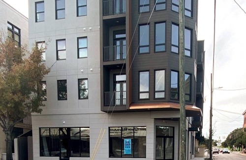 Discover modern luxury in Savannah's historic district! Our newly constructed apartment offers upscale living with rooftop terrace views, a private balcony, and spacious bedrooms each with a 64" TV. This building has 6 identical apartments with an elevator to easily get to your space. With spa-like bathrooms and all-new appliances, your stay promises comfort and convenience. Experience Savannah like never before - book your getaway now!