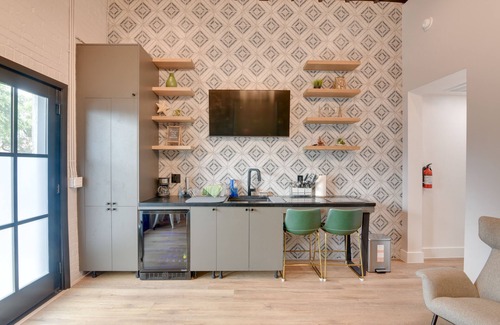 Embark on a Texas retreat you won’t forget at this stylish Galveston vacation rental! Located just over 1 mile from Poretto Beach and perfect for couples and families, this 2-bedroom, 1-bath carriage unit boasts a kitchenette, 3 Smart TVs, a workspace, and step-free access! Visit downtown Galveston’s eclectic boutiques, restaurants, bakeries, and coffee shops or travel back in time via the 23rd St. trolley and check out the area’s antique shops, bookstores, museums, and haunted houses! Book now.