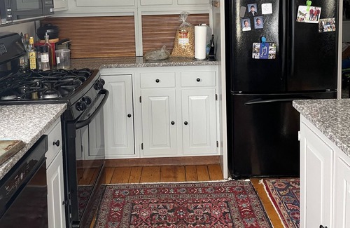The Charles Mansur House is a historic farmhouse centrally located in Weston, VT. It is a short walk to the flagship Vermont Country Store, Mildred's Dairy Barn, The Village Market, The Christmas Store, and The Left Bank and The Hub restaurants. The Weston Theater company is close and features live shows every summer. The Priory is a short drive where you can enjoy gentle monk singing. The house consists of two floors. The main floor provides a full kitchen with a gas stove, a full bathroom, and washer and dryer. There is a back door that leads to the small, fenced-in yard where you may enjoy a chimenea fire to roast marshmallows, a grill to cook local meats and veggies, and an outdoor shower to wash off the West River water should you choose a cooling swim or a relaxing tube float enjoying the scenery. The second floor provides three bedrooms and a full bath.
