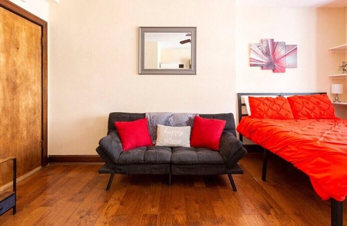 This Downtown KC Studio is located in the Quality Hill District in the thick of downtown. You are in walking distance from the most sought out spots: Power & Light District, T-Mobile Center, River Market or even the Crown Center (which is great for families)! Your furry friends are also welcome!