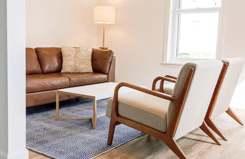 The kitchen is fully stocked with coffee, tea, spices. We love to cook and have included ceramic dishes handmade in Portugal from Fable and knives from Kilne. Please feel free to use them all, they are provided for your enjoyment. The living room hosts a flat-screen TV with Netflix. The two bedrooms have luxurious Helix Sleep mattresses and Brooklinen bedding.
