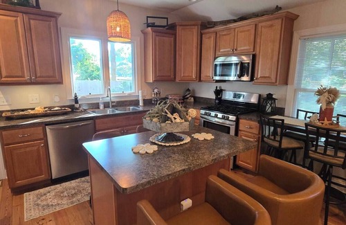 In the Historic Downtown Riverside Community. The Riverside Lighthouse is a charming, historic home, tucked away on a peaceful street in the heart of Downtown just steps away from New Bern's rich history, vibrant dining, nightlife, shops, and antique stores. This home is minutes away from the New Bern farmers market and the beautiful Union Point Park. As one of the few full sized homes truly situated in this prime location, it offers a rare blend of spaciousness, comfort, and convenience. This 3 bedroom 3 bath (sleeps 12) downtown home offers family oriented travelers a place to combine family living at cheaper cost. Excellent for Wedding groups, family reunions, birthday shenanigans, and more events in the community i.e. mum fest, car shows, antique shopping, holidays, vacations, anniversaries, celebrations, and more. Other Activities: Crabbing, fishing, kayaking, boating, biking, and much more. This home is surrounded by the Maola Wedding Center, Copper Ridge Wedding Venue, Union Point Park, Carolina Colours, and numerous others.