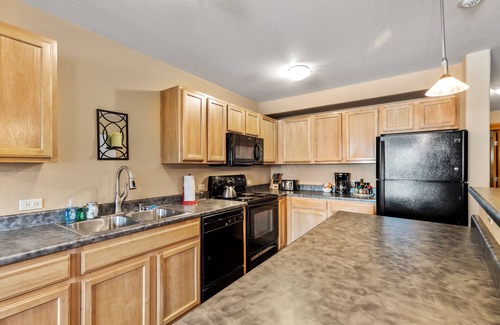 The dining room has seats for 6 that make allow your whole group to dine together or play one of many games that are inside the condo. The living room has two separate couches that form a sectional and a day bed by the window. The large flat screen TV is located right above the gas fireplace which makes the perfect setting to watch a movie or your favorite sports game.