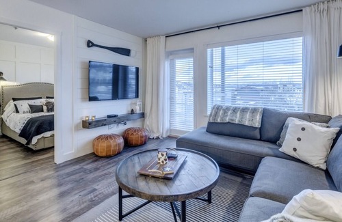 The space has been professionally designed and decorated with modern, upscale furnishings and features. Large sectional, 55" Smart TV, CableTV, Wi-Fi, electric fireplace, dinning area, stainless steel appliances and a fully stocked kitchen!