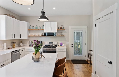 We have made a purposeful approach for our guest to preserve the home's original character. An original fireplace now acts as a secondary banister for the staircase. The brick from a second chimney has been repurposed into highly coveted off-street parking. Reclaimed barn wood accents are found throughout and a restored clawfoot tub adorns the upstairs bath.