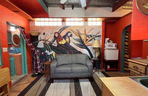 Guests can relish the tranquil ambiance of our lovely yard, which is adorned with cacti and lively birds. Additionally, all guests are welcome to visit the hummingbird deck. To access it, simply enter through the East door located on the left side of the hotel reception door. Use the same door code to make your way to the second floor where the most incredible view and unforgettable nightly sunset await you.
