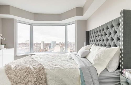 Each of our homes offers a unique experience for our guests. At this Yorkville suite, our guests start the day right with a cup of tea/coffee and soak in an unobstructed view from the living room bay window of 20th-floor suite. The suite is north facing, as such it is peaceful, quiet and ensures a night of restful sleep for guests
