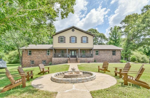 Welcome to Pebblebrook Stables located in the northern part of Georgia! Stay at this 15-acre farm with resort-worthy amenities and charming interiors. The home is located on the hill overlooking the fire pit area.