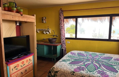 The Dreamweaver has been a favourite for years in Rocky Point with its beauty, charm and incredible view of the Sea of Cortez. A step from the Malecon (the Mexican boardwalk) Robin & Mark have lovingly restored this unique "CASA" featuring 7 eclectic and distinctive Mexican flavour rooms. Each has its own bathroom/shower, "kitchenette" with vacation amenities (microwave, fridge, coffee machine, kettle, toaster, dishes), TV & Wi-Fi. A collective water dispenser provides fresh cold water and reduces polluting plastic so, make sure to bring your bottle. Welcome and experience the Puerto Peñasco life.