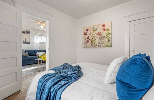 Our fully fenced backyard offer guests a BBQ, green space, and your own private outdoor dining area! When the day is over, snuggle up in one of our many beds and watch Netflix, Amazon Prime or Disney plus!