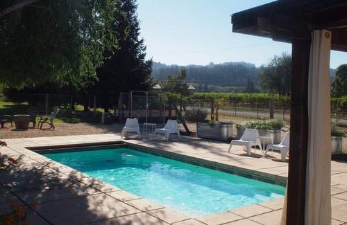 Location, Location, Location! Only 1.4 miles from Downtown Healdsburg and the famed Healdsburg Plaza Square. You'll be staying as close to the center of culinary delights yet wakeup in the country! There is a main house with 3 bedrooms, 2 baths adjacent to your very own tasting room as well as a pool & hot tub all overlooking hundreds of gourgeous acres of Zinfandel, yet only minutes into town. We have a delightful pool designed to "sit & sip" at all four corners. Take a relaxing dip in the luxurious hot tub or cozy up to the bar overlooking it all.... enjoy all the wine country has to offer on your very own private wine country Ranch, right off the world renown wine trail which is Dry Creek Road!