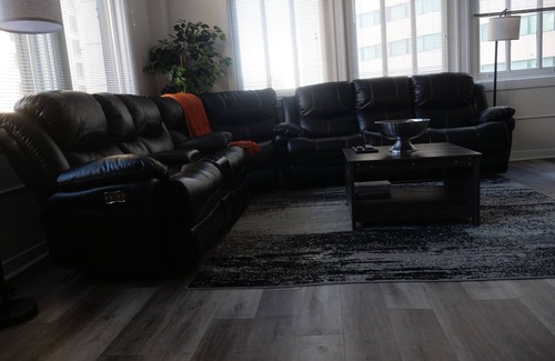 Experience the ultimate blend of comfort and convenience in the heart of the city. This stylish and spacious apartment features a plush King and Queen size bed, perfect for a restful night’s sleep after exploring downtown. Enjoy modern amenities, including a fully equipped kitchen, and a cozy living space with reclining chairs.