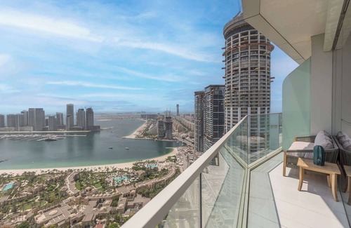 The apartment offers a newly refurbished open-plan dining and sitting area with aTV, ideal for unwinding after a day exploring Dubai. Step out onto the balcony to savour your morning coffee and take in the incredible views! The apartment boasts contemporary amenities, including a fully equipped kitchen and a super king-size bed with ensuite bathroom.