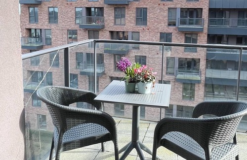 This is my beautiful home and I often travel for work, so opening up occasionally for guests. It is a large one bedroom apartment with a balcony that has views out over Dublin. Conveniently located 15 mins from the airport and 25 mins from central Dublin by bus.