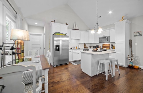 This adorable home has 2 bedrooms, 1 full bath and offers an open concept living/kitchen/dining area with cathedral ceilings and recessed lighting. Each bedroom offers a queen bed. The full size kitchen has plenty of room for you and your guests. Features include granite counter tops, subway tile backsplash, stainless steel appliances, electric stove, refrigerator with ice maker, dishwasher, microwave, Keurig and more. Enjoy sitting out on the front porch while enjoying the private setting or slip into your own private oasis in the backyard. The home is within a short walk (or bike ride) to all the conveniences of the Village!