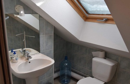 - Upstairs: - A bedroom with a double bed (160 cm), plenty of storage space, and a bathroom with sink and toilet.