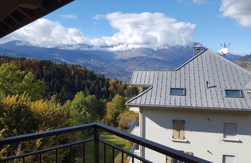 -A balcony with mountain view on the Aravis chain