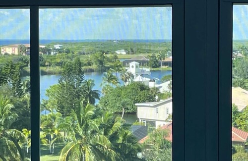 The Eagles nest has a Dynamite view of Charlotte Harbor and the Soundings Lakes. From this seventh floor unit you can see forever... Watch sailboats head to Boca Grande Pass. This 2 bedroom, 2 full bath unit is beautifully furnished in tropical colors with wood floors (no carpet) a true Florida gem with 2 Master suites (split bedrooms) with adjacent full baths great for visitors to allow privacy. Cook in the huge gourmet equipped kitchen. Keurig coffee maker. Living room with comfortable sleeper sofa and recliner. Large smart TV with Neflix and other capabilities. Free high speed WiFi so you can send friends and family pictures to make them jealous :)