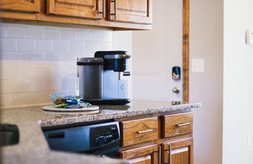 Upon entering the front door you’ll find a bench and hooks to unload your things. The living room is straight ahead with high ceilings, a sectional sofa, TV and beautiful gas fireplace! You can enter the kitchen/dining combo from the front hall or living room. Here you’ll find a large, sparkling clean fridge, all the cookware and dishes needed to enjoy a meal with loved ones and a Keurig Cafe to fulfill your coffee and latte cravings!