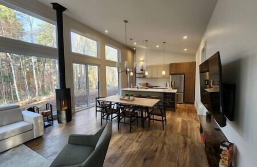 🌲🪵Soak up the calm and serenity of Chalet Terre, in the heart of nature. You will be less than 5 minutes from the Tremblant ski slopes in a peaceful area where you will find tranquility and calm after a beautiful day outdoors. A plenitude of activities await you if you feel like it, but if you prefer to enjoy the moment, the chalet is perfect for just resting and breathing for a moment! CITQ#310969 Chalet Terre is cradled in an atmosphere of serenity, surrounded by nature where soothing colors, soft textures and warm, natural materials envelop you. Three bedrooms welcome you.The master bedroom has a queen bed with its own bathroom. The second bedroom also has a queen bed, while the third bedroom has a bunk bed. 2 full bathrooms where you can enjoy the benefits of aromatherapy. The kitchen is ready for meals with friends, cooked or not, with all the necessary equipment to prepare good meals if you feel like it. A large 55-inch TV is installed in the living room to share a good film with friends. You will also have a spa to relax in at the end of a day outdoors. Quiet trail close to the Diable River and Mont Tremblant. You are surrounded by nature. The car is the most efficient means of transport for traveling in the region.