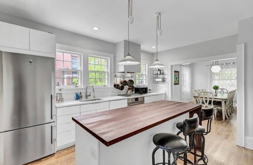 We hope you have a great stay in Wilmington's Beautiful Historic District! The Ebert-Artis House is a renovated downtown home with modern conveniences all while maintaining its historic charm. This property features a stately front porch, elegant contemporary kitchen, beautiful hardwood floors, fenced in rear yard, and off street parking! The upstairs features two guest bedrooms, a full guest bathroom and a beautiful owner's suite, which includes a renovated bathroom with dual vanities, soaking tub, and large walk-in shower. The downstairs features office (or 4th bedroom!), formal dining, eat in kitchen and living room with fireplace. You'll love spending time in the spacious backyard complete with a fire pit and grill. The house is equipped with a whole house water filtration system and comes with plenty of room to have space for all of your family and friends! If you drive an electric vehicle, there is even a TESLA charger installed at the house for you to use.