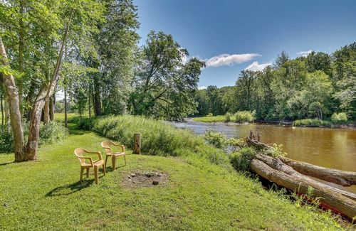 Experience the perfect balance of nature and comfort when you retreat with loved ones to this spacious vacation rental home in Cadott, WI. Perfectly nestled along the riverfront, this 5-bedroom, 3-bathroom property offers tranquil water views from the backyard. When you're ready to go out, hike through Lake Wissota State Park, take the kids to Irvine Park Zoo, or attend a lively concert at Rock Fest. Return to the home in the evening and gather in a living area of your choice for a movie night.