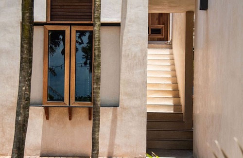 The 3-bedroom villa was built for guests to relish the landscape. Not only does it have a 100-meter private beachfront in a vibrant nature reserve, but it blends in with its surroundings. The open-plan living spaces fuse into the spectacular deck and pool, where the beach and its coco palms become part of the architecture. A 2.5-acre estate embraces the house, itself tucked between the Caribbean Sea and the beautiful Campechén Lagoon.