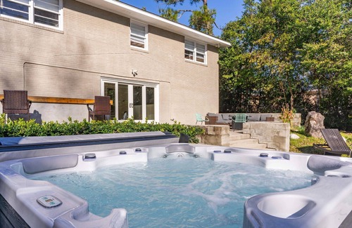 Lounge in the stylishly designed living room or enjoy gaming on the PS4 in the family room. Outside, your private backyard paradise awaits: soak in the soothing hot tub, take a refreshing dip in the pool (please note, it is not heated), or relax on the comfortable outdoor seating. The yard is perfect for evening barbecues or enjoying coffee by the pool in the morning.